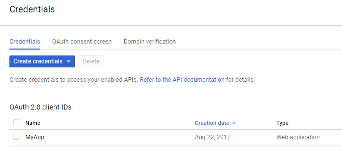After the API has been enabled, a message will be displayed informing that you need to create credentials to get started. Select the Create Credentials button: