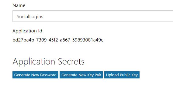 In the Application Secrets section, select the Generate New Password button: